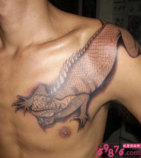 男人披肩半胛蜥蜴刺青_肩部纹身图案大全_纹身图吧