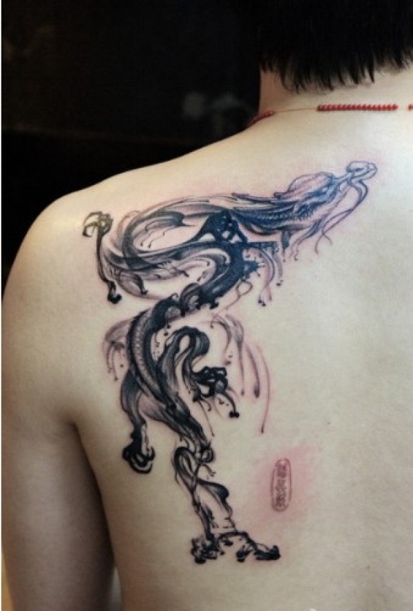 水墨画龙创意肩部纹身_肩部纹身图案大全_纹身图吧