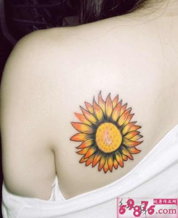肩胛骨美丽太阳花时尚纹身_肩部纹身图案大全_纹身图吧