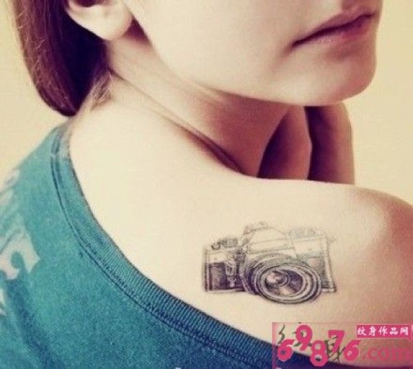 女生肩上唯美照相机纹身_肩部纹身图案大全_纹身图吧