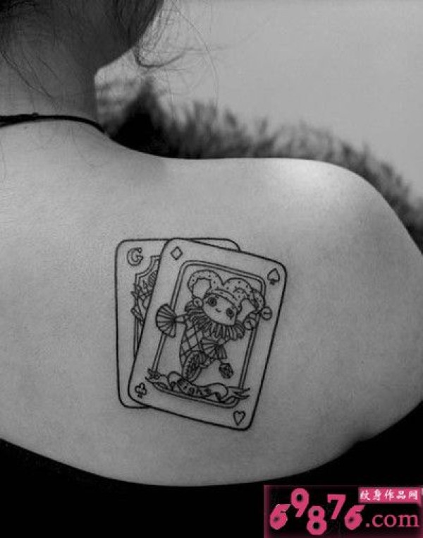 女生个性扑克牌大王纹身_肩部纹身图案大全_纹身图吧