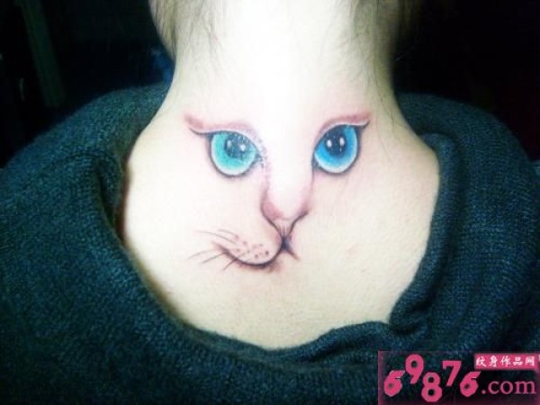 后颈可爱猫脸纹身_肩部纹身图案大全_纹身图吧