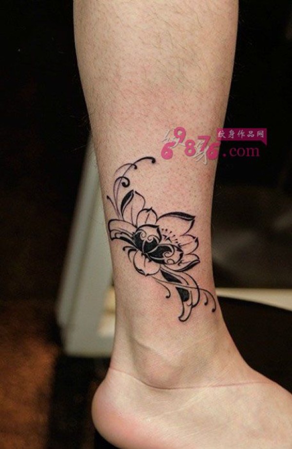 黑灰莲花脚踝纹身_脚部纹身图案大全_纹身图吧