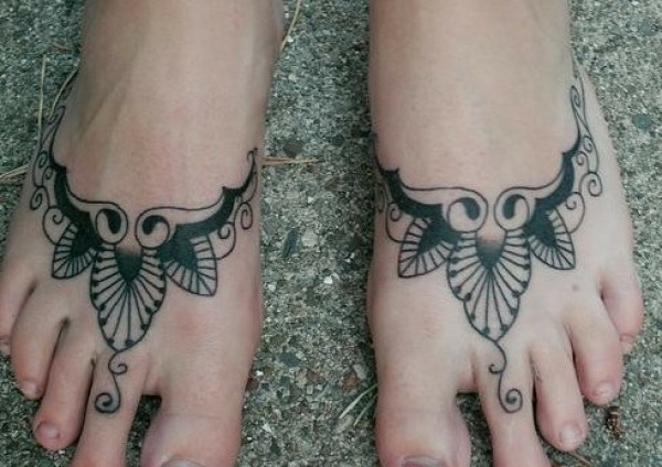 个性时尚双脚一对修饰环刺青_脚部纹身图案大全_纹身图吧