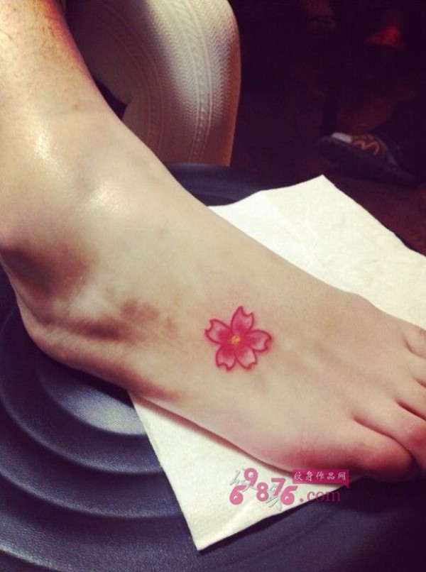 粉色樱花朵脚背纹身_脚部纹身图案大全_纹身图吧