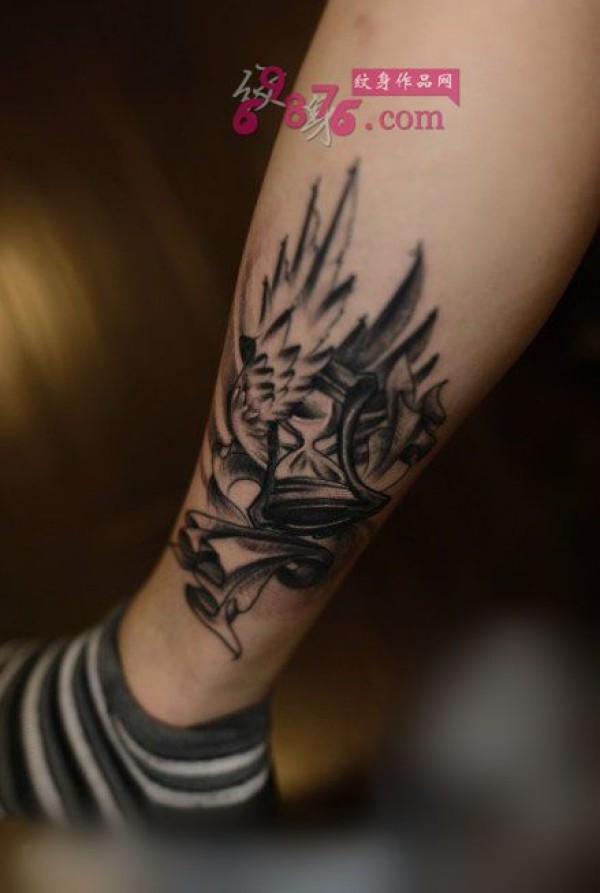 欧美黑灰翅膀沙漏脚踝纹身_脚部纹身图案大全_纹身图吧