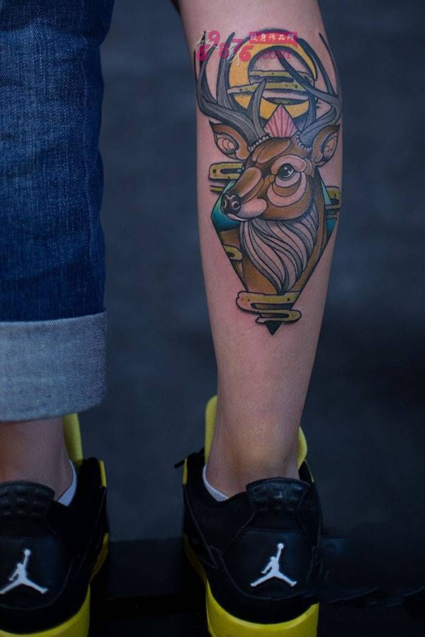 时尚鹿头小腿纹身_脚部纹身图案大全_纹身图吧