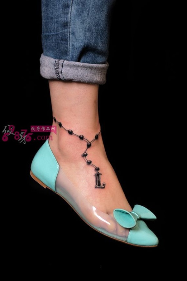吊坠字母脚链时尚纹身_脚部纹身图案大全_纹身图吧