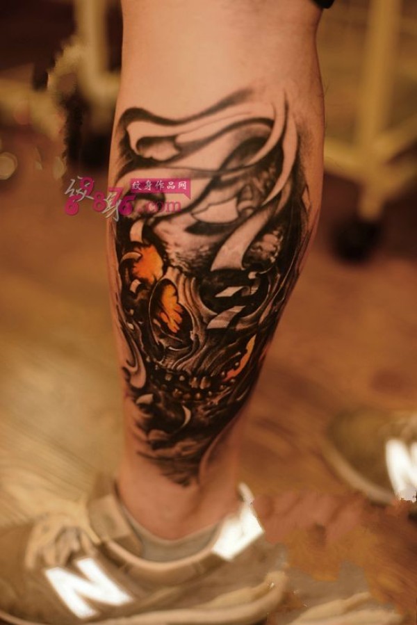 骷髅花腿个性纹身_脚部纹身图案大全_纹身图吧