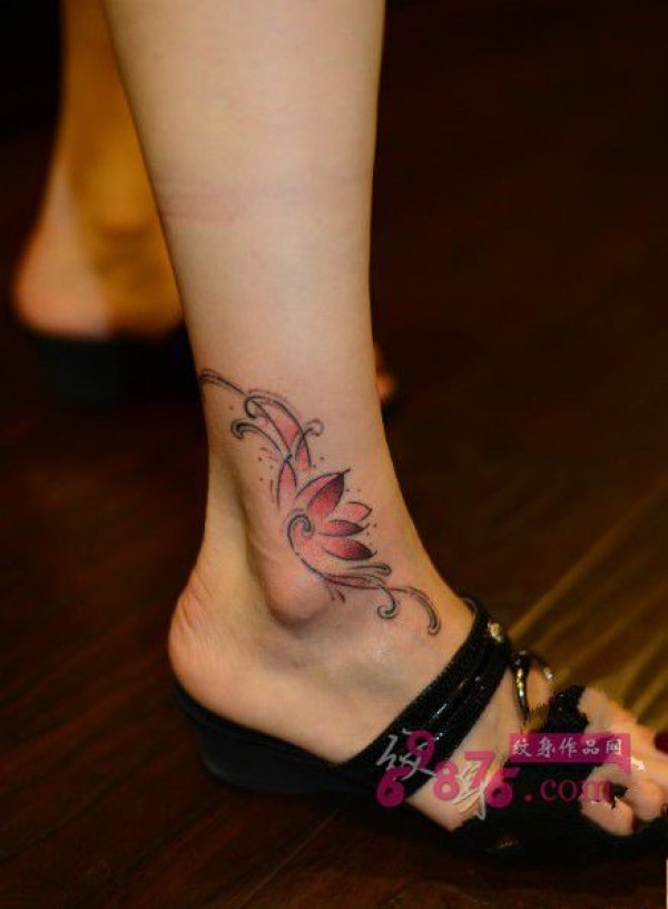 美女脚踝处小巧潮流的莲花纹身图案_脚部纹身图案大全_纹身图吧
