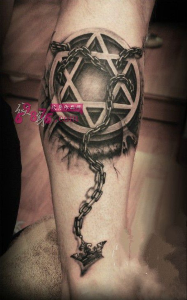 欧美素描铁链小腿纹身_脚部纹身图案大全_纹身图吧