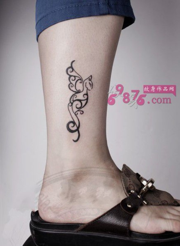 另类线条狐狸脚踝纹身_脚部纹身图案大全_纹身图吧