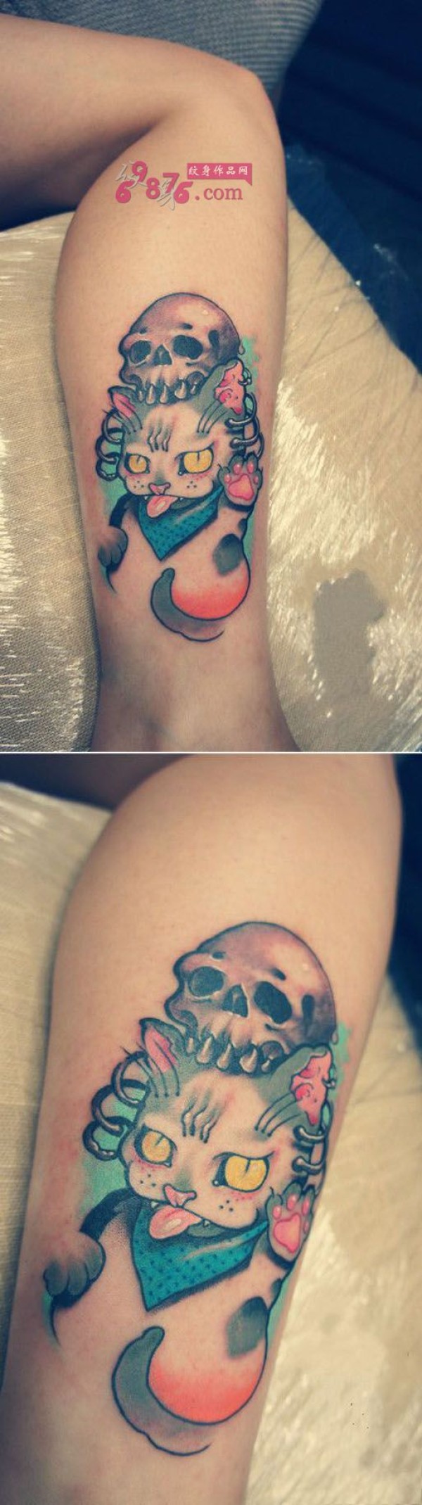 个性骷髅猫咪脚踝纹身_脚部纹身图案大全_纹身图吧