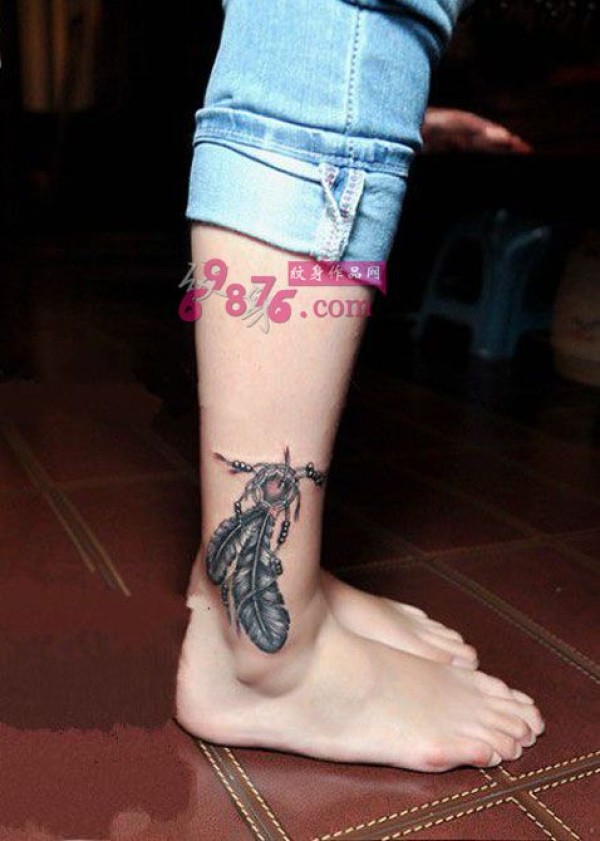 印第安羽毛创意脚踝纹身_脚部纹身图案大全_纹身图吧
