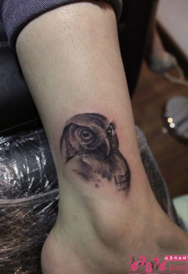 水墨老鹰头像脚踝纹身_脚部纹身图案大全_纹身图吧