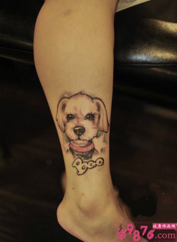 可爱狗狗肖像脚踝刺青_脚部纹身图案大全_纹身图吧