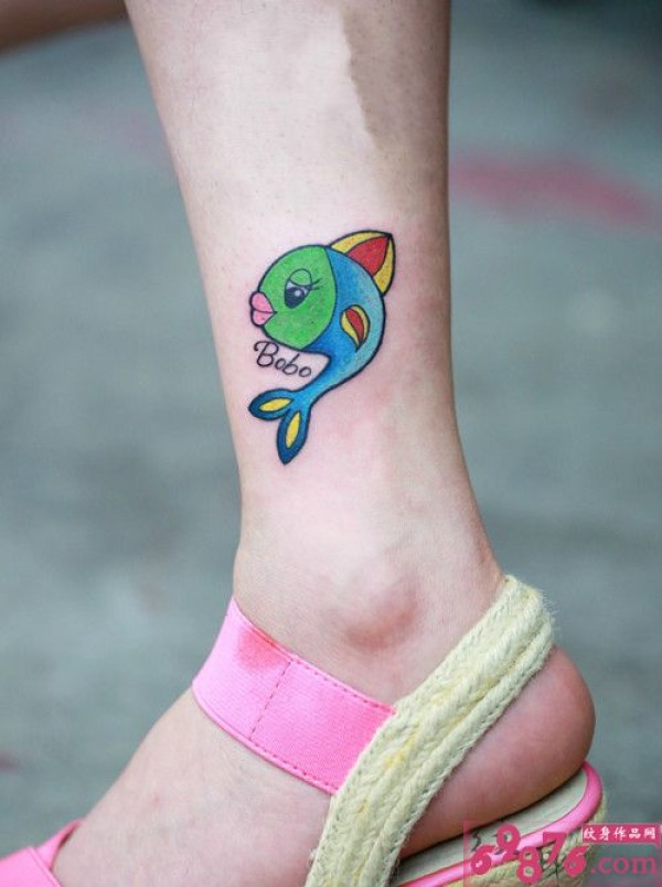 清新可爱小彩鱼脚踝纹身_脚部纹身图案大全_纹身图吧