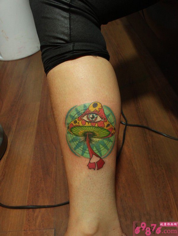 创意眼睛蘑菇脚踝纹身_脚部纹身图案大全_纹身图吧