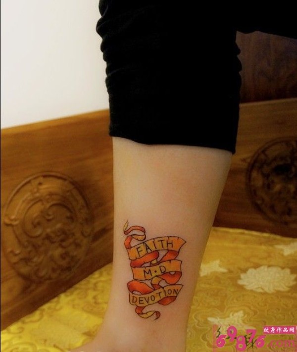 彩色飘带脚踝纹身_脚部纹身图案大全_纹身图吧