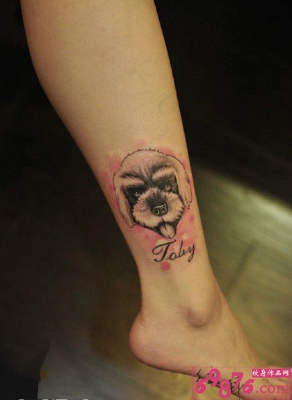 可爱狗狗头像脚踝纹身_脚部纹身图案大全_纹身图吧