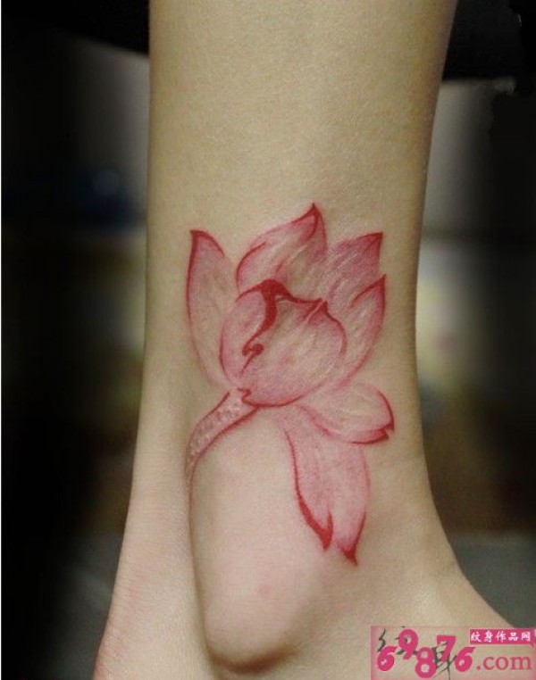 脚踝盛开荷花时尚纹身_脚部纹身图案大全_纹身图吧