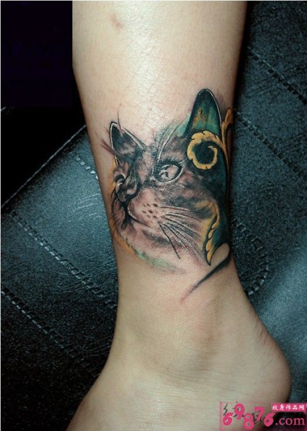 脚踝猫咪头刺青_脚部纹身图案大全_纹身图吧
