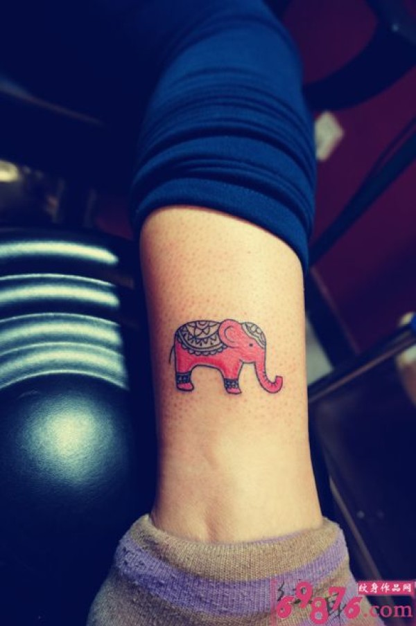 小腿可爱大象纹身_脚部纹身图案大全_纹身图吧