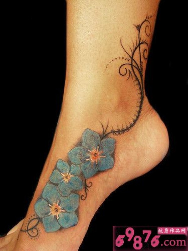 脚背美丽小花朵纹身_脚部纹身图案大全_纹身图吧