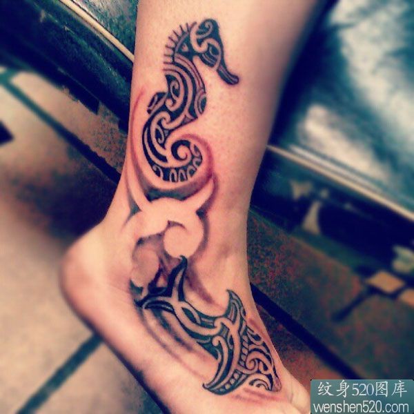 脚部可爱海马纹身图案_脚部纹身图案大全_纹身图吧