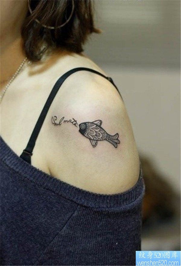 一幅女人肩背鱼纹身图案_肩部纹身图案大全_纹身图吧