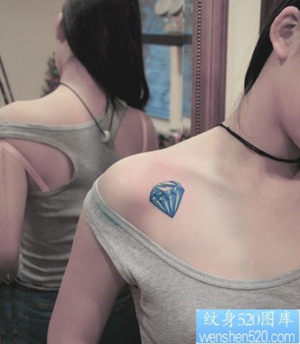 一幅女人肩部彩色钻石纹身作品_肩部纹身图案大全_纹身图吧