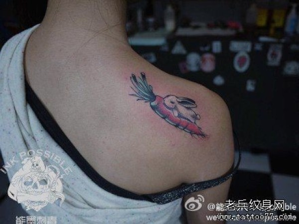 女人肩背可爱的小兔子与萝卜纹身图片_肩部纹身图案大全_纹身图吧