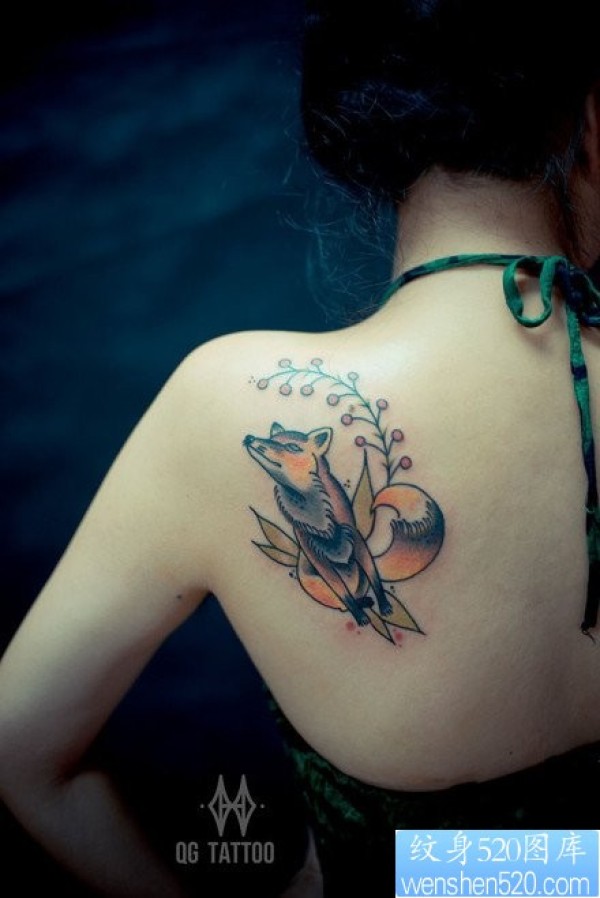 女人肩背唯美好看的狐狸纹身图片_肩部纹身图案大全_纹身图吧