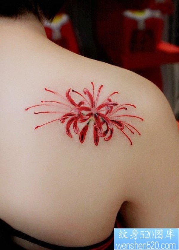 美女肩背漂亮精美的彼岸花纹身图片_肩部纹身图案大全_纹身图吧