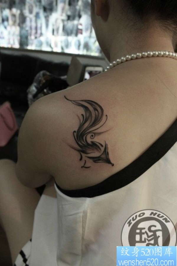 女人肩背潮流时尚的狐狸纹身图片_肩部纹身图案大全_纹身图吧