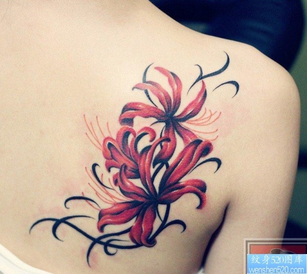 纹身520图库推荐一幅肩背彼岸花文身图片_肩部纹身图案大全_纹身图吧