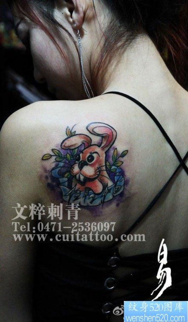 女人肩背前卫流行的一张小兔子纹身图片_肩部纹身图案大全_纹身图吧