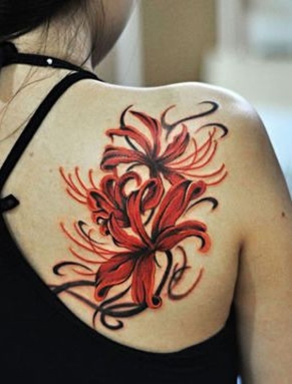 一张女孩子肩部彼岸花纹身图片_肩部纹身图案大全_纹身图吧