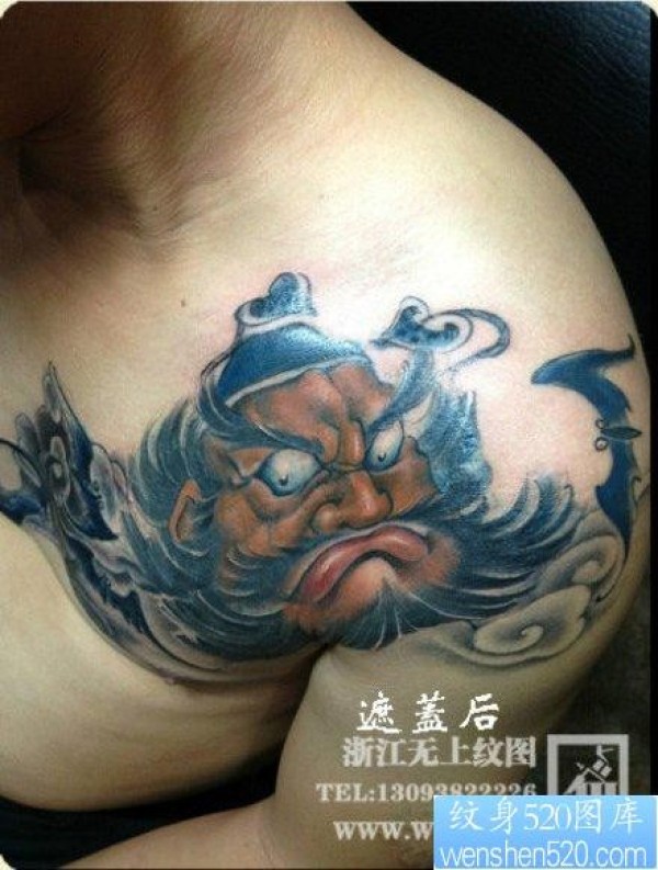 男性肩膀处经典的钟馗纹身图片_肩部纹身图案大全_纹身图吧