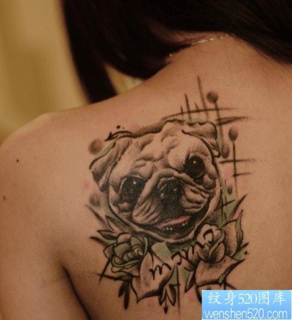 一幅肩部狗狗文身图片由纹身520图库推荐_肩部纹身图案大全_纹身图吧