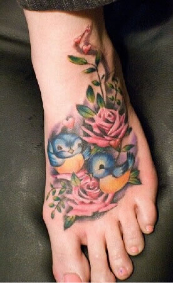 脚背上彩色的燕子纹身图案_脚部纹身图案大全_纹身图吧