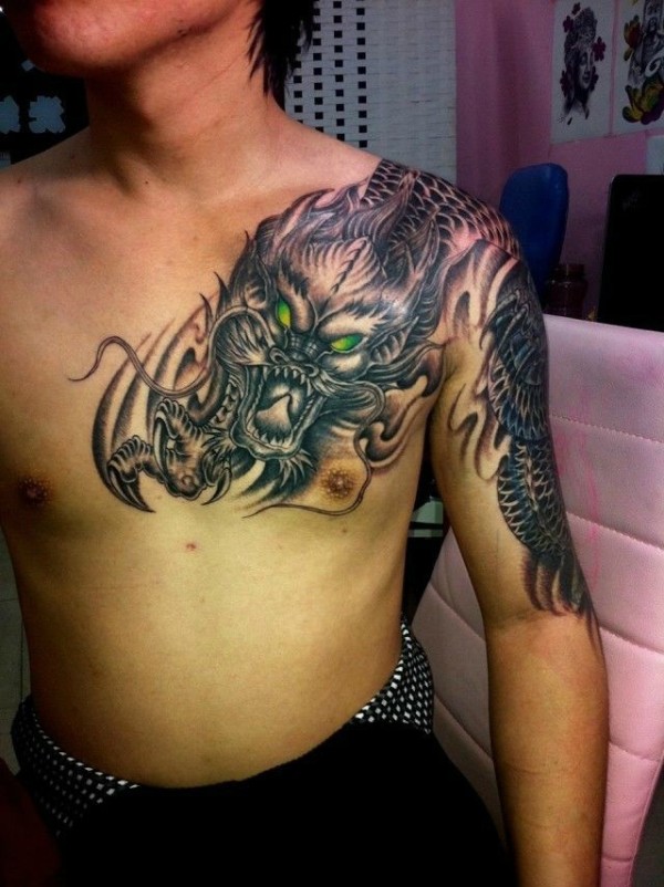 北京艺健堂多款精美纹身作品展示素色点睛过肩_肩部纹身图案大全_纹身图吧