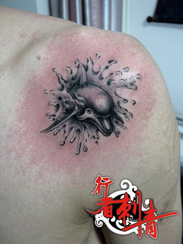 一款肩部好看的海豚纹身图案_肩部纹身图案大全_纹身图吧