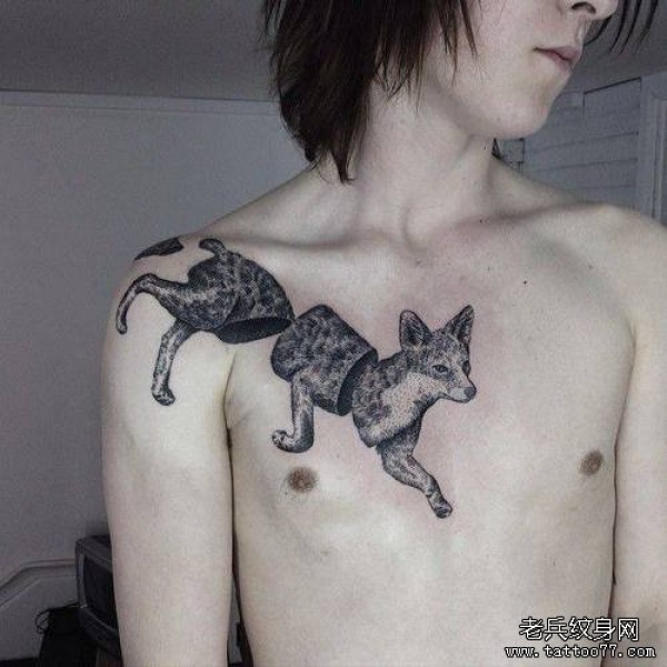 男人个性肩背狼纹身图案_肩部纹身图案大全_纹身图吧