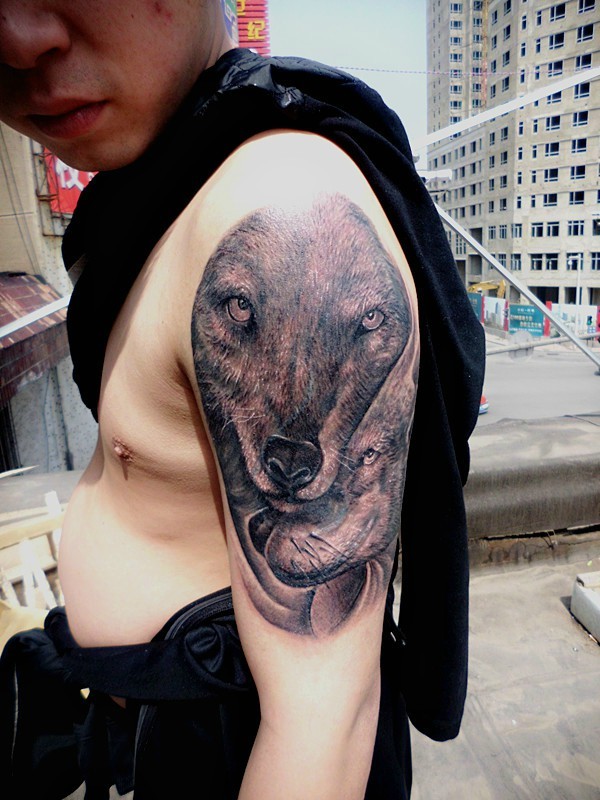 天津雕琦刺青店纹身作品肩部狼头纹身图案_肩部纹身图案大全_纹身图吧