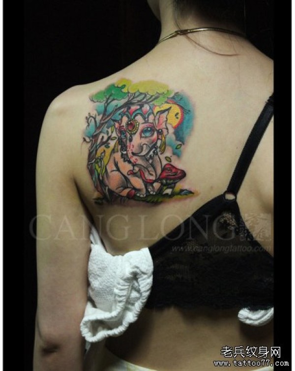 美女后肩背潮流好看的小象纹身图案_肩部纹身图案大全_纹身图吧