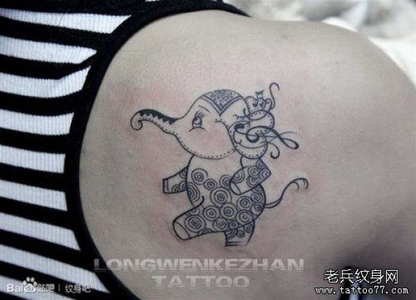 肩背可爱潮流的小象纹身图案_肩部纹身图案大全_纹身图吧