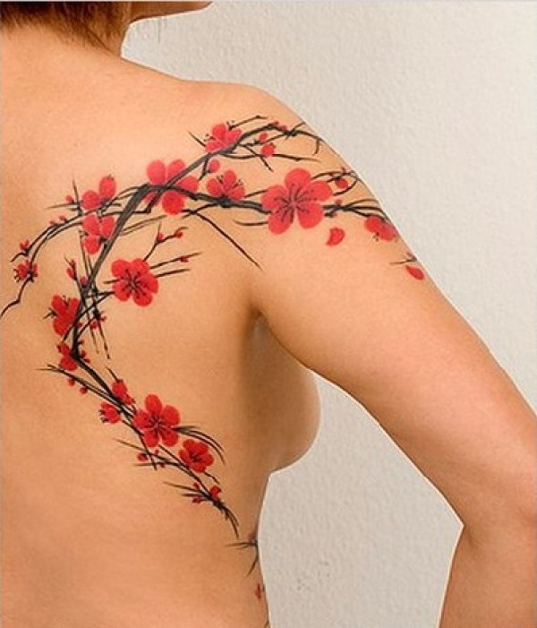 后肩背梅花纹身图案_肩部纹身图案大全_纹身图吧