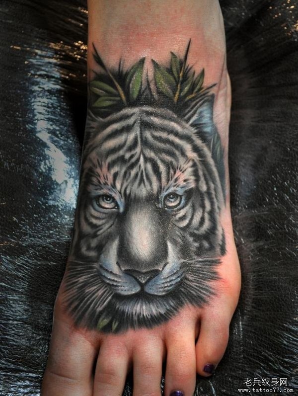 脚背上一款霸气的老虎纹身作品_脚部纹身图案大全_纹身图吧