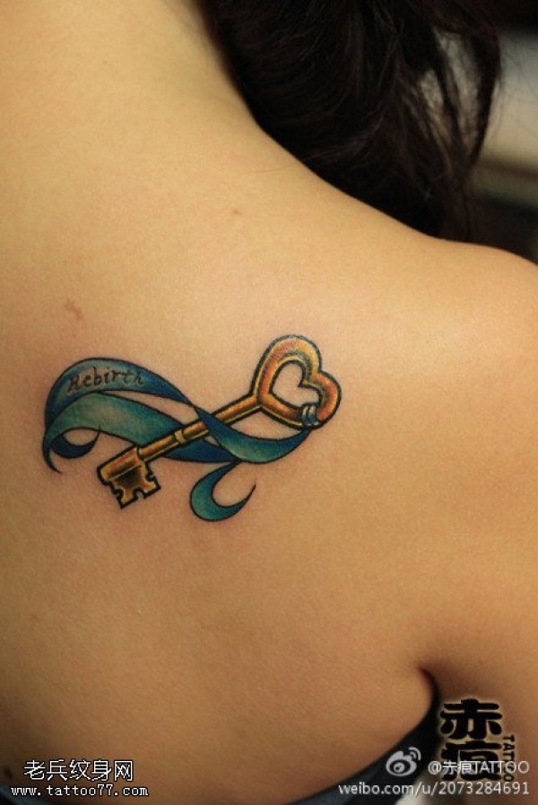 女性肩部彩色钥匙纹身图案_肩部纹身图案大全_纹身图吧